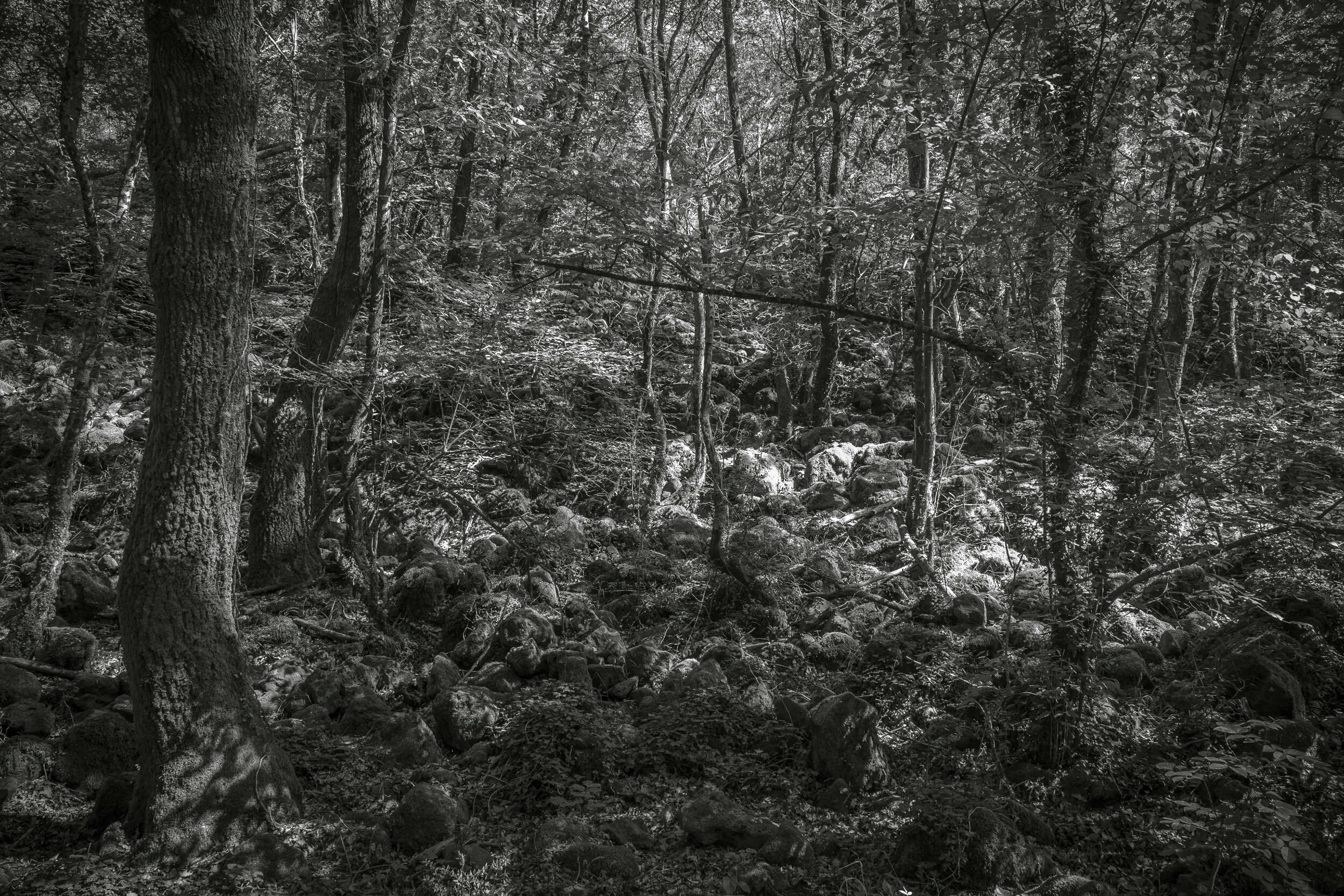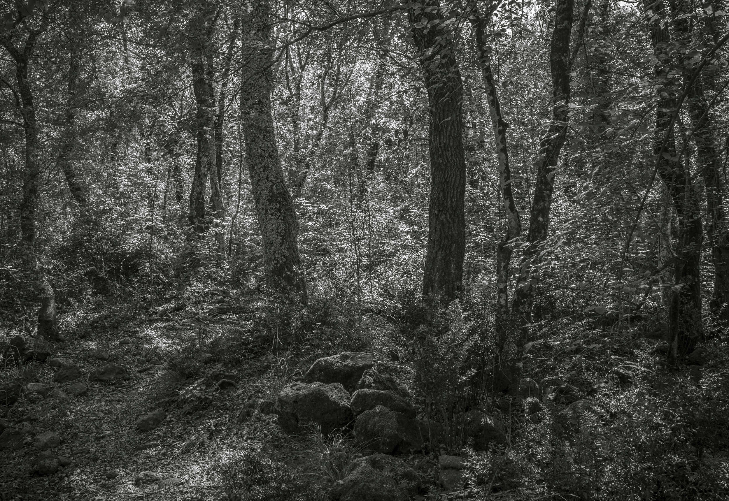 Salvo del Lamone, Farnèse: paysage abandonné par les Étrusques il y a deux mille ans. Le sol est couvert de blocs de tuf, derniers vestiges de leur présence. Laissée à elle-même la forêt est devenue si impénétrable que ce fut un des derniers refuge des brigands dans l'Italie naissante du 19éme siècle. C'est aujourd'hui une réserve naturelle.